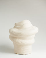 Vasen luzz i matt krämfärg. Den runda och fylliga formen tillsammans med keramikens mjuka yta skapar en inbjudande känsla