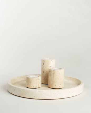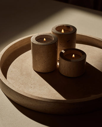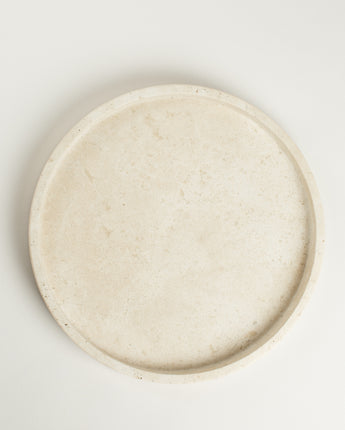 Upplev den eviga stilen med vår Bricka Travertine rund beige 30cm. Huggen ur premium Travertine-sten, utstrålar denna bricka en tidlös skönhet som höjer vilket rum som helst. Dess hållbara konstruktion garanterar långvarig användning, medan dess eleganta design adderar en touch av sofistikation till din heminredning. Perfekt för servering, organisering eller enbart som dekorativt stycke.