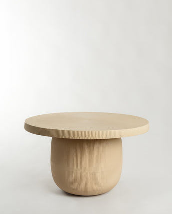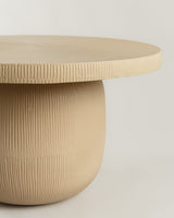 Med sin runda form och matta sandton förmedlar soffbordet Tigran en känsla av lugn och balans i rummet. En diskret design som låter materialet och formen tala – samtidigt som det är praktiskt och stilrent.