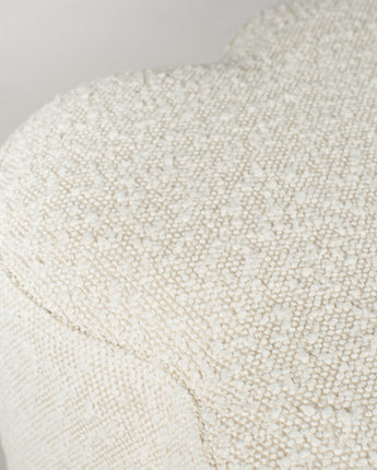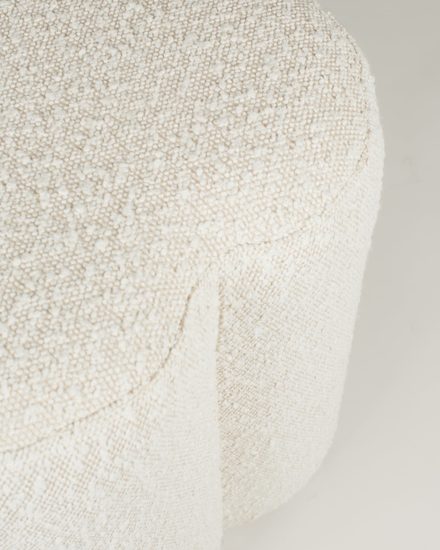 Vår puff "Nalani" klädd i mjuk bouclé i en varm cream-ton är både inbjudande och elegant. Dess rundade form och generösa dämpning gör den perfekt som extra sittplats, fotpall eller som en dekorativ detalj vid soffan. Ett mönster i vardagsrummet som är lika praktisk som den är estetisk.