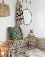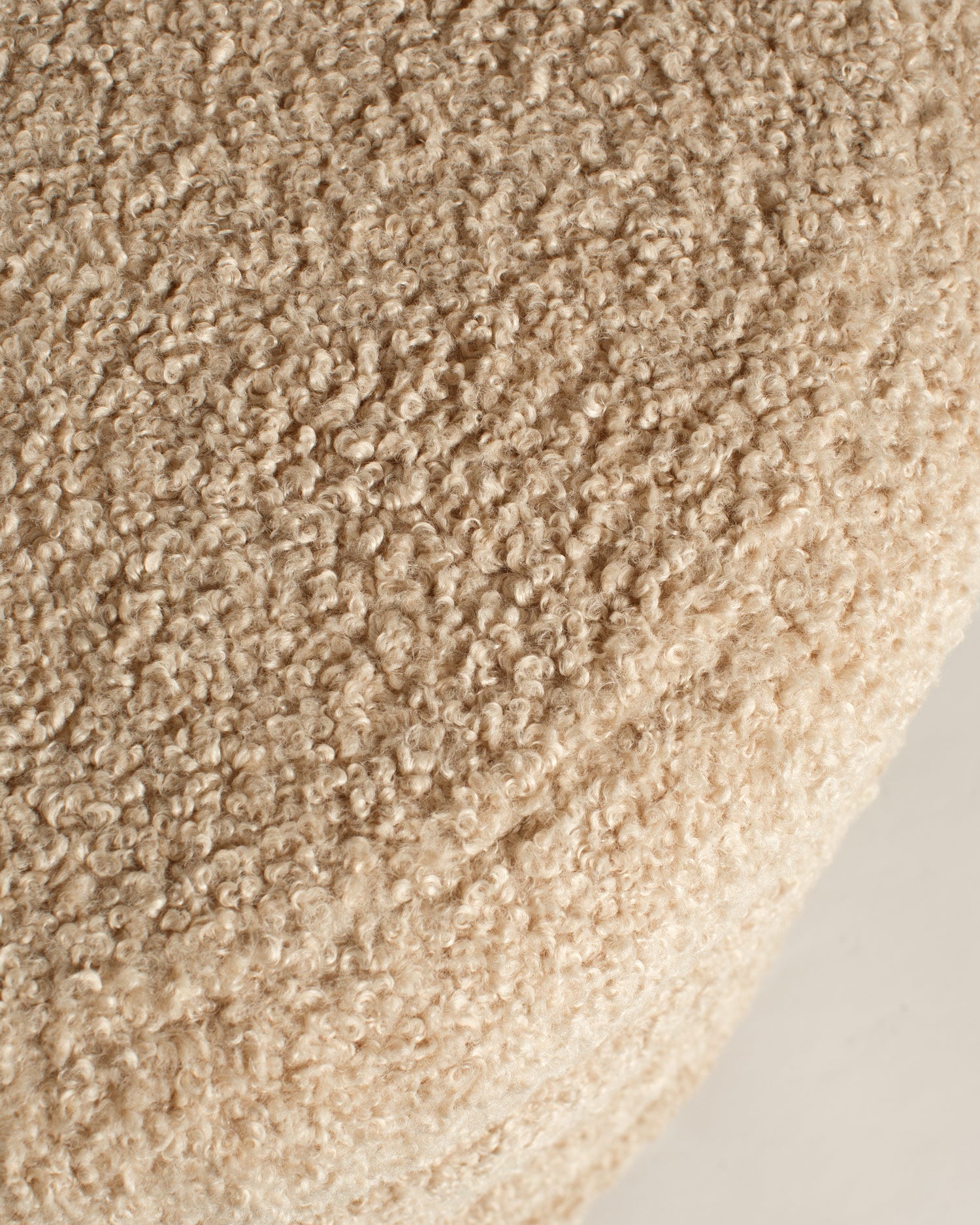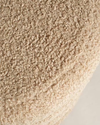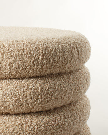 Runda pallen “Teddy” är både mysig och dekorativ med sin lekfulla teddy-textur och stilfullt beige utförande.