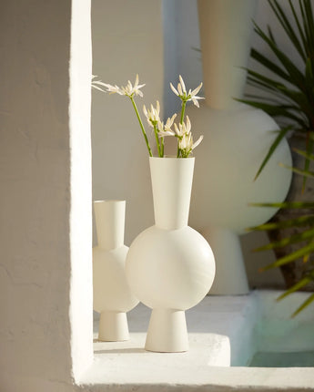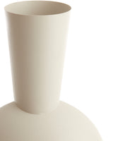 En elegant oval vas i metall med matt cream-finish som tillför en lugn och stilren känsla till ditt hem. Vasens smidiga form och yta gör den enkel att kombinera med andra inredningsdetaljer, samtidigt som den skapar ett vackert blickfång. Finns i flera storlekar och färger för att passa just din stil.