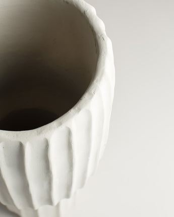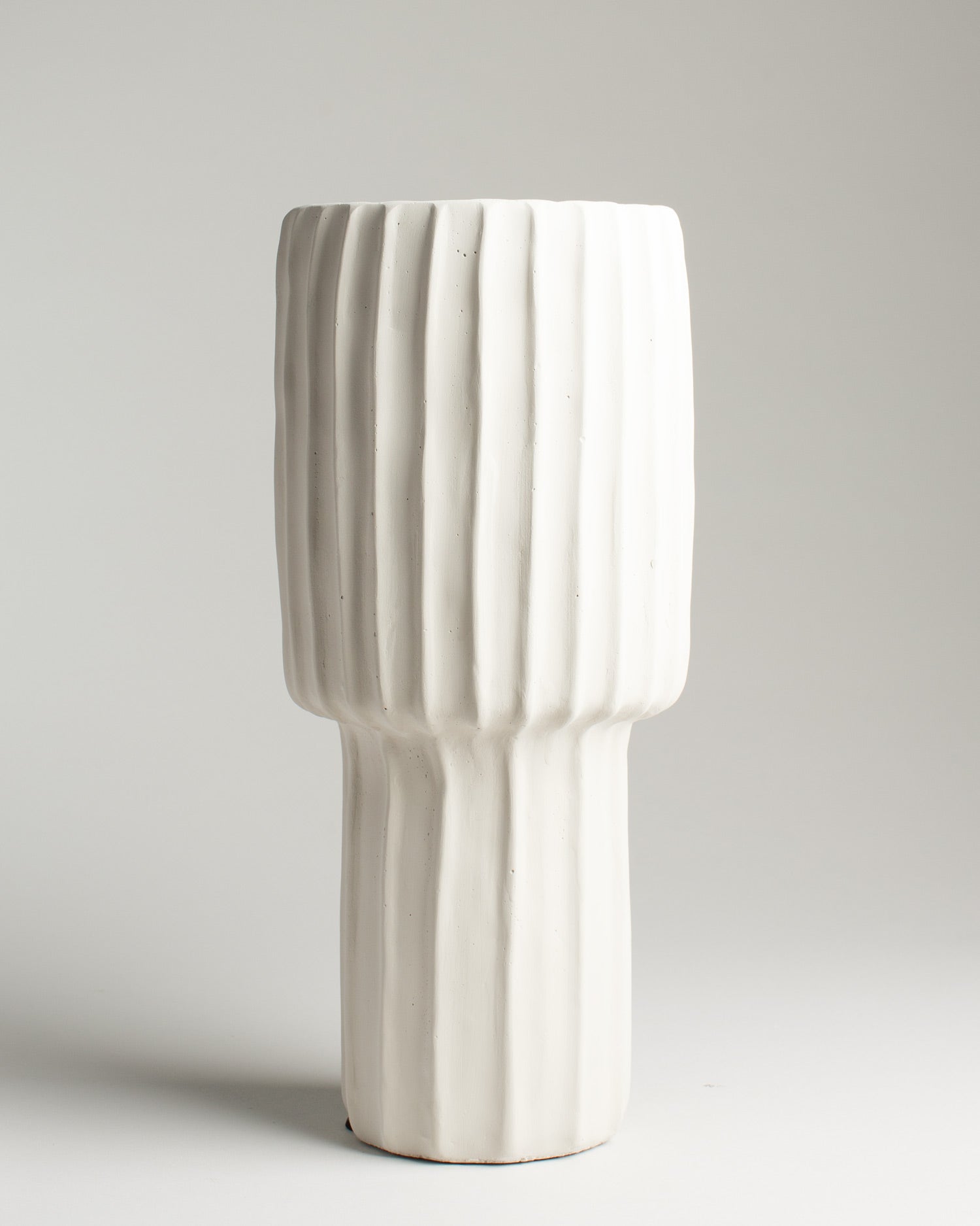 Den eleganta vasen "Maja" i matt creamfärgad cement ger varje rum en lugn och sofistikerad känsla. Med sin smala design och harmoniska färgton passar den perfekt i både moderna och klassiskt inredda miljöer – oavsett om den används dekorerad med blommor eller som en skulptural detalj på egen hand.