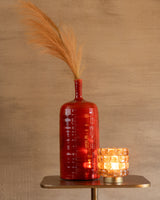 The Hurricane cognac-colored glass candle holder spreads a warm, soft glow through its beautiful mosaic pattern. An elegant and timeless detail that works just as well on the coffee table as on the dining table.