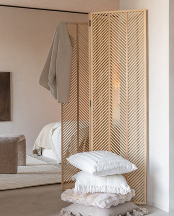 • Beige textilklädsel som bidrar med mjuk och varm känsla