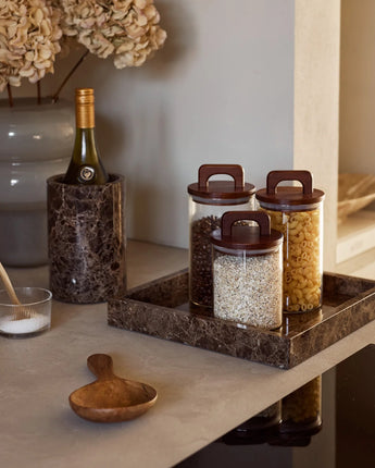 Den här vackra brickan i brun ton är perfekt för att lägga ut dina ostar, kex, och andra snacks. Dess eleganta design och robusta konstruktion gör den till en utmärkt addition till ditt kök. Brickan kan användas under många år om det sköts rätt.