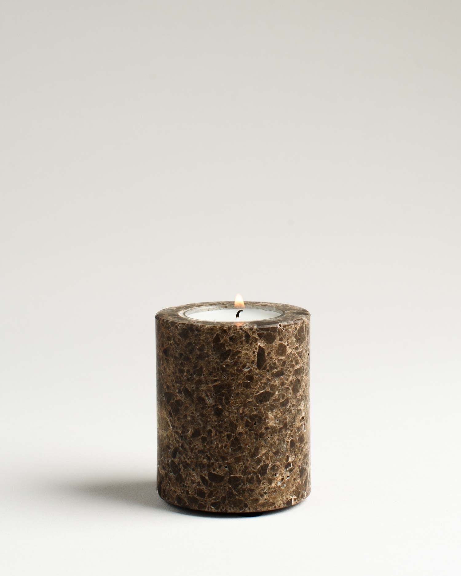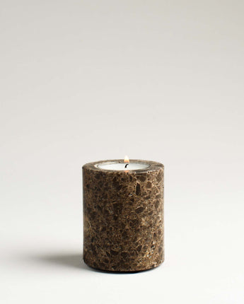 En elegant ljuslykta i äkta Dark Emperador-marmor som tillför en känsla av lugn och lyx till varje rum. Varje exemplar är unikt — perfekt som stämningsskapare vid middagsbordet eller på soffbordet.